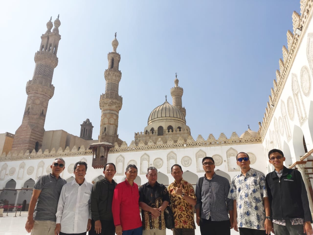 CAIRO- Rektor UGM Prof. Ir. Panut Mulyono, M.Eng., D.Eng., IPU., ASEAN Eng. dan Rektor UMS Prof. Dr. Sofyan Anif, M.Sc beserta rombongan melakukan sholat dhuhur di Masjid Agung Al-Azhar Cairo, Ahad, 6/10. Ikut dalam rombongan Guru Besar UGM / Mantan Atase Pendidikan KBRI Cairo Prof. Dr. Sangudi dan Pimpinan Pondok Modern Tazakka KH. Anizar Masyhadi.