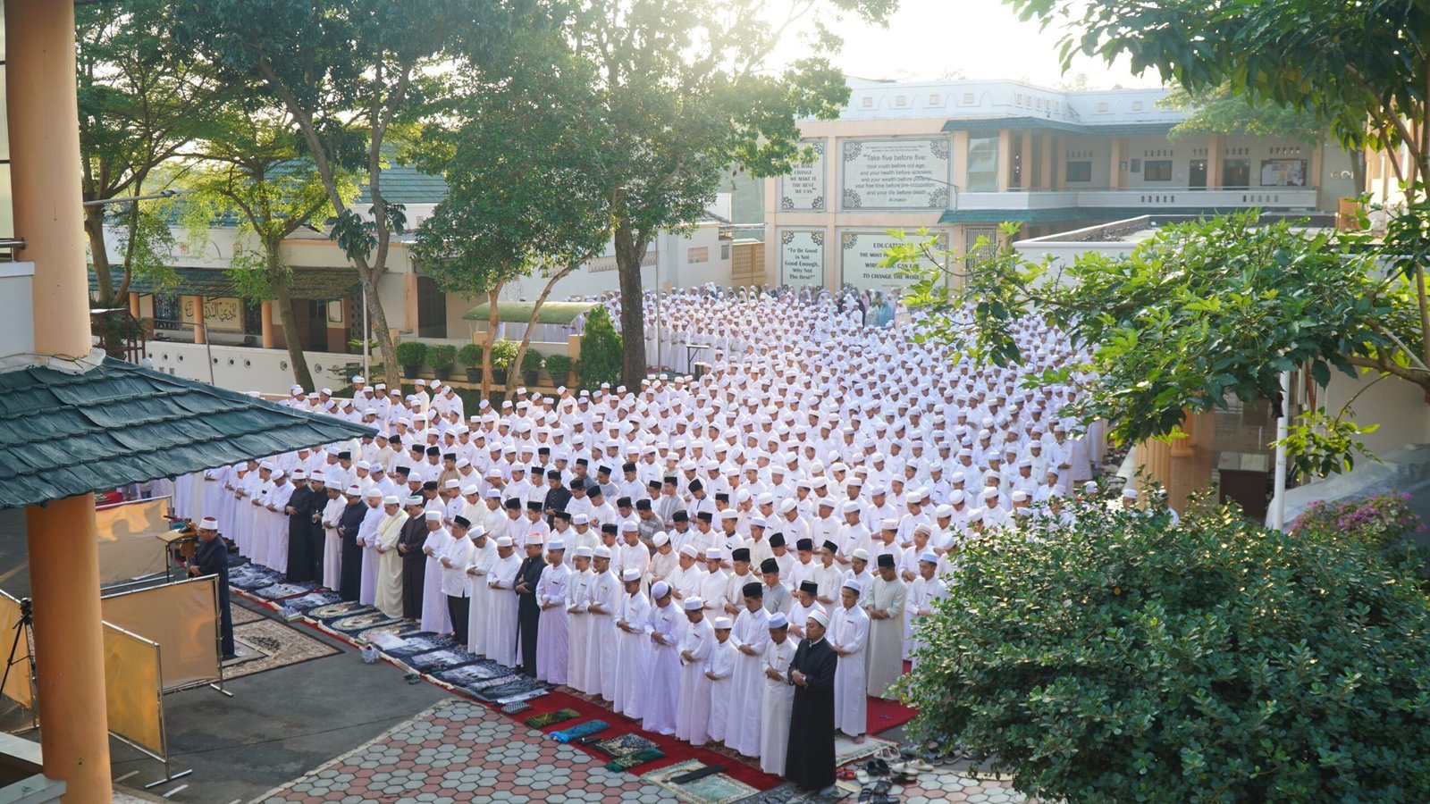 Tazakka, Jumat 6 Juni 2025 — Pondok Modern Tazakka menyelenggarakan Shalat Idul Adha 1446 H dengan penuh khidmat di halaman Gedung Robithoh. Kegiatan ini diikuti oleh seluruh santri, asatidz, sayyidat, Anshar, serta turut hadir Prof. Dr. Yaman Iswani beserta putranya.